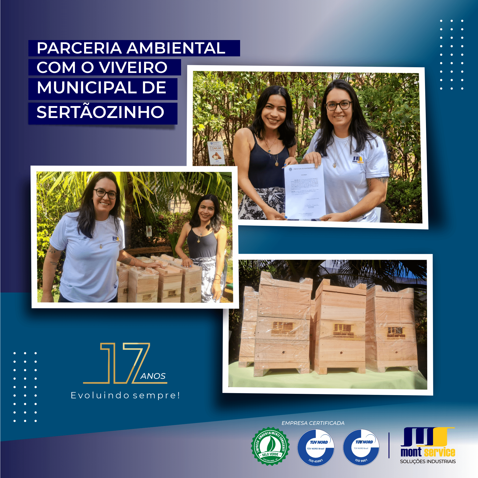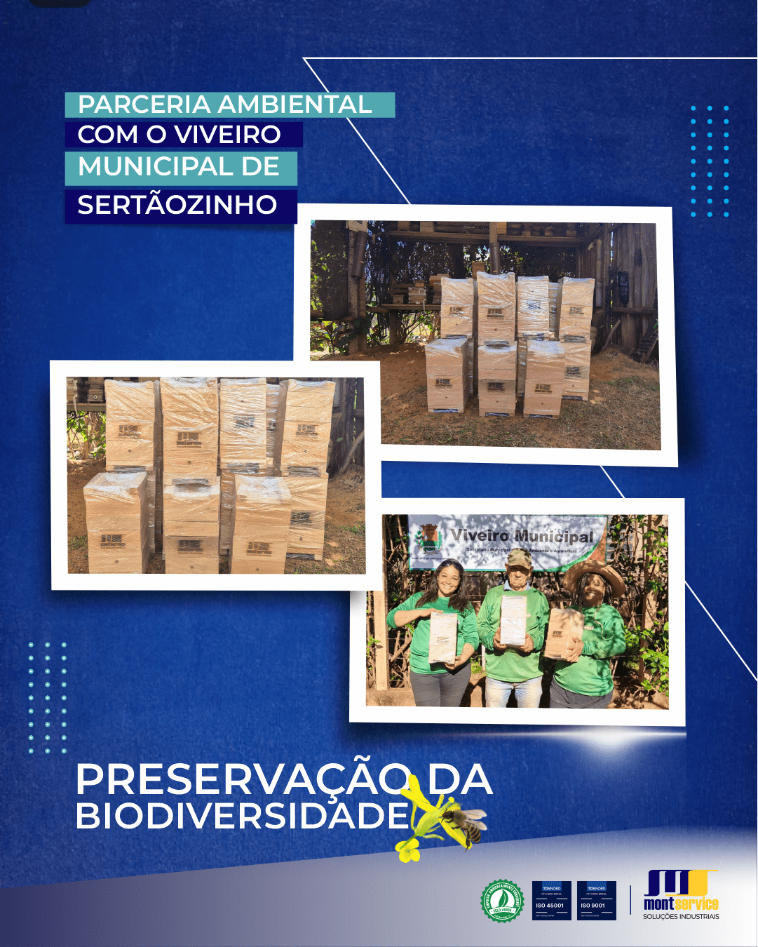 O engajamento com o meio ambiente está no dia a dia da #montservice Dedicando a nossa parceria com o Viveiro Municipal de Sertãozinho.SP, assumindo um compromisso em ajudá-los no quer for necessário. Já de início, conseguimos realizar a doação de caixas de madeira preparadas para moradia e reprodução de abelhas sem
